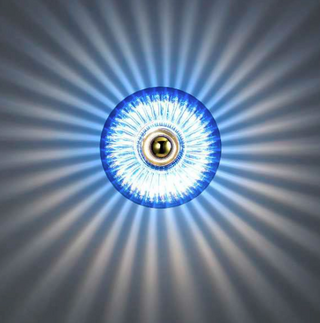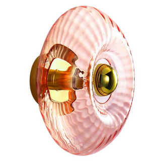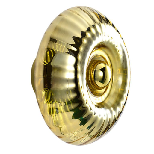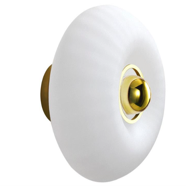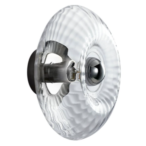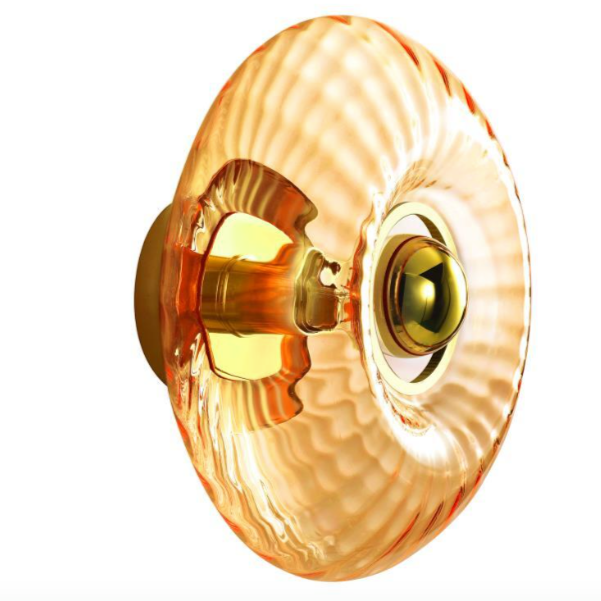 Cette applique en verre soufflé fait rayonner les murs ou les plafonds. La base de l'applique est dorée (ou argentée selon la variante choisie) pour rappeler l'ampoule qui est calottée pour de ne pas éblouir son admirateur.