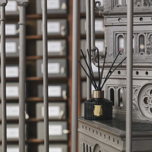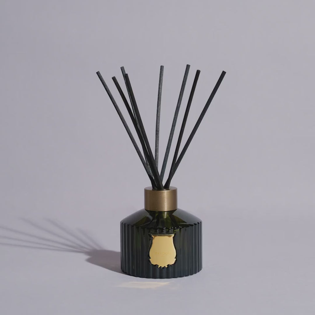 Le Diffuseur « Cyrnos » de Trudon invite au voyage sur la Côte d’Azur, en s’inspirant de la villa du même nom. Avec son élégant flacon en verre cannelé vert signature, orné du blason doré de la Maison, il renferme une fragrance aux accents méditerranéens